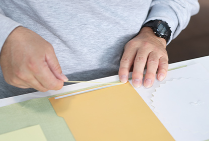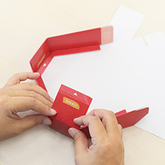 折れ線に沿って、商品をまとめる厚紙を折ります